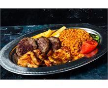 540,00 TL160 gr. ( 4 adet ) kasap köfte, bulgur pilavı, patates kızartması, köz domates biber