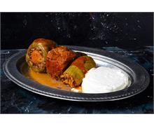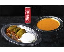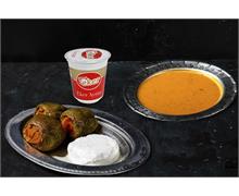 370,00 TL1 etli biber dolma 1 etli kabak dolma 1 etli kurupatlıcan dolma + etli yaprak sarma,yoğurt