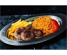 400,00 TL160 gr. ( 7 adet ) cızbız köfte, bulgur pilavı, patates kızartması, köz domates biber